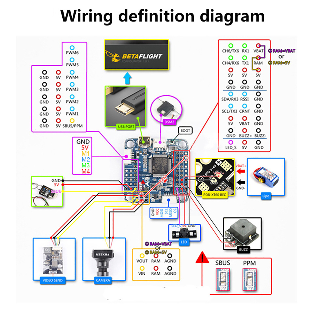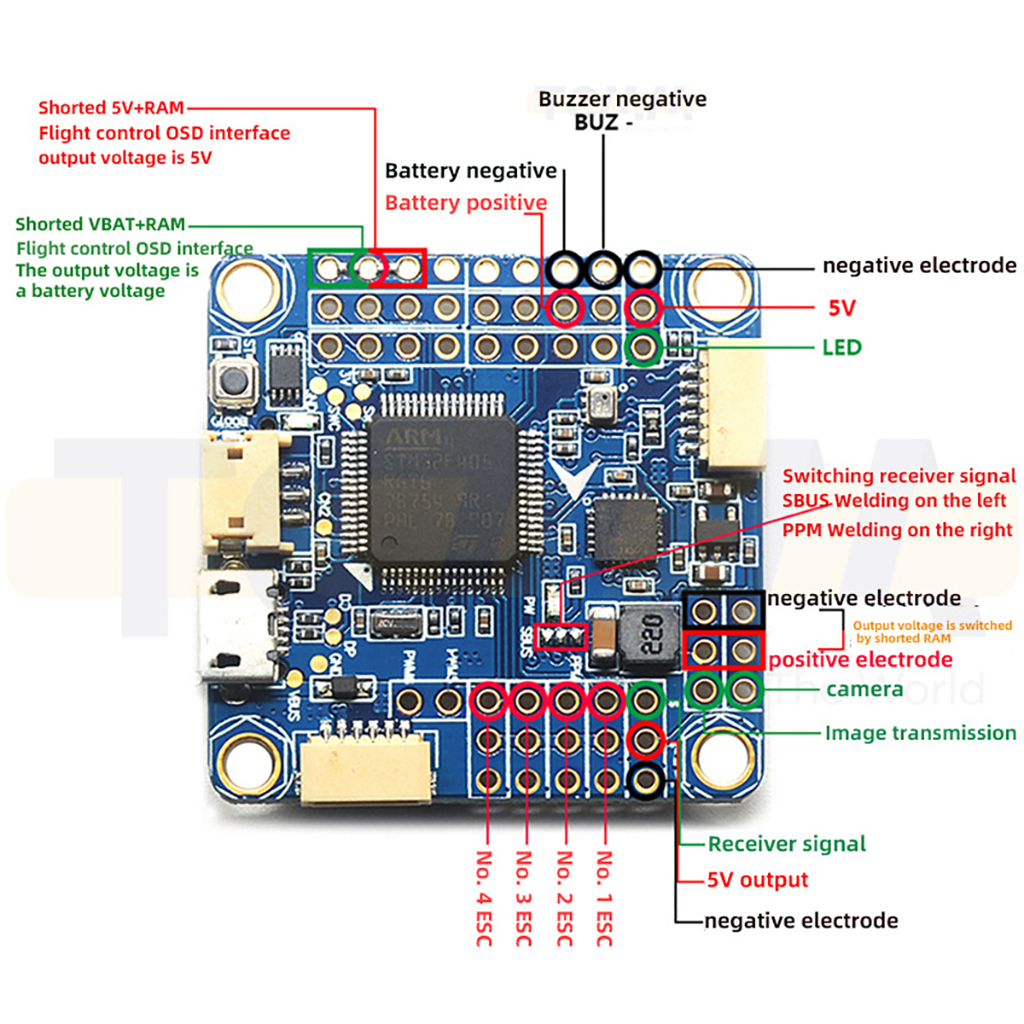 1. The F4V3S is a 3-6S 36x36mm mini flight controller with a microSD card blackbox, 5V dual BEC. Designed for easy maintenance and low interference.