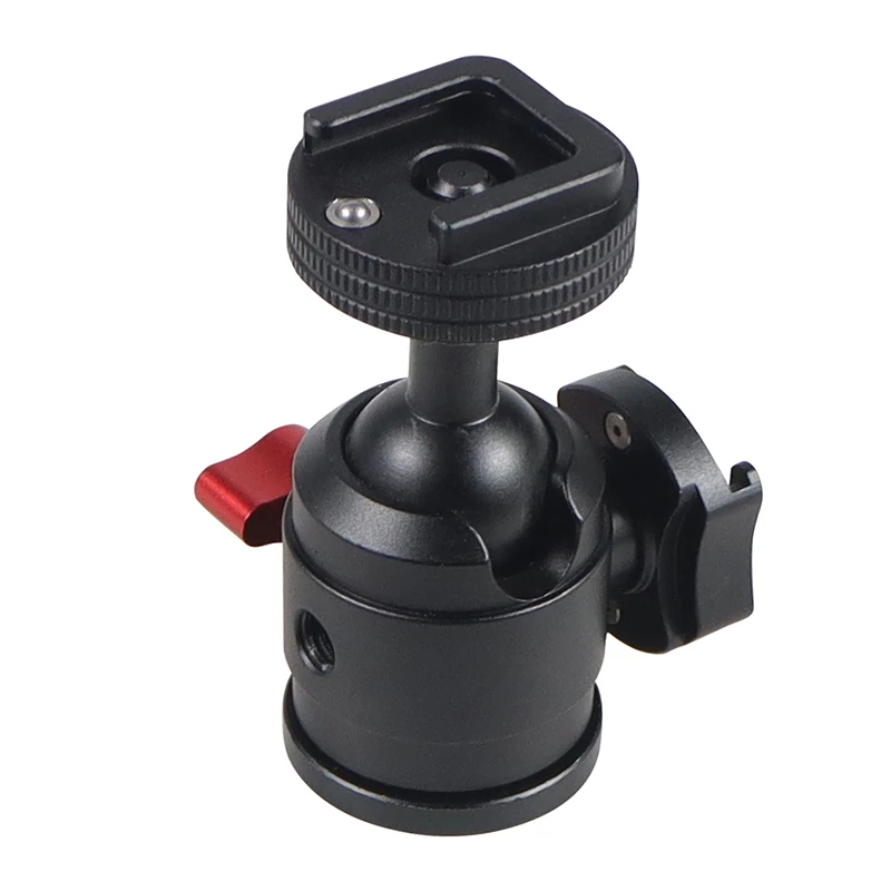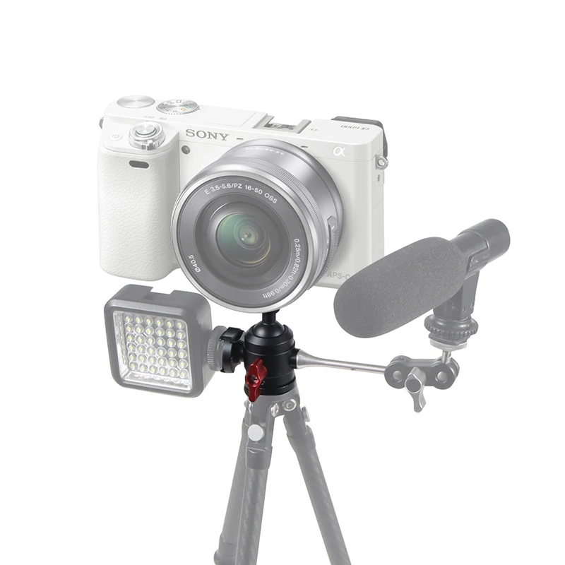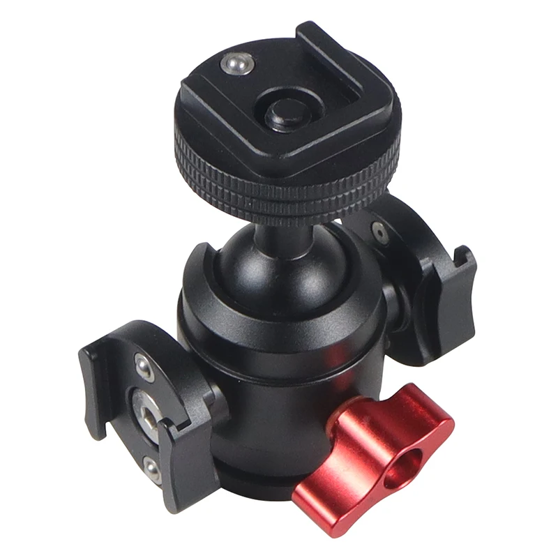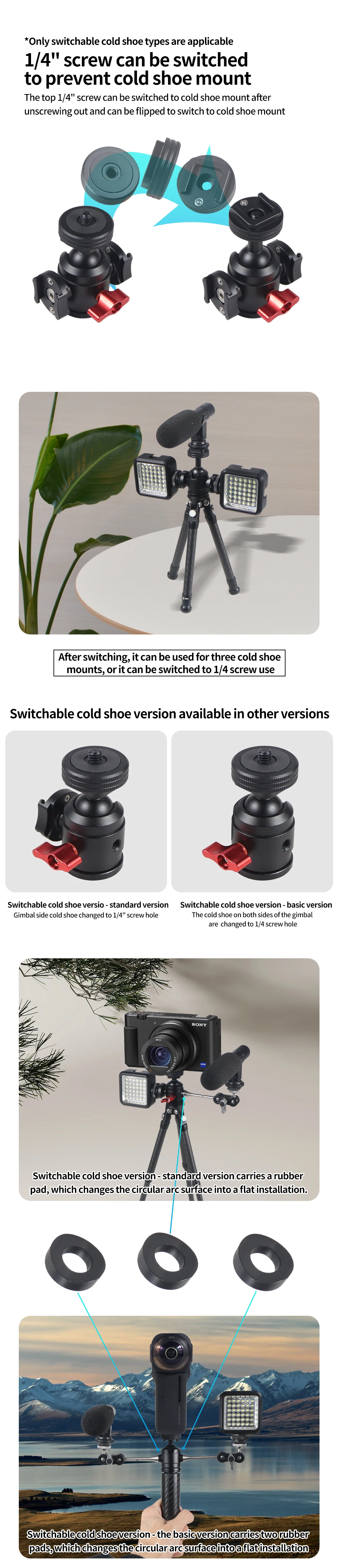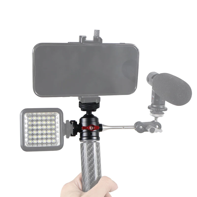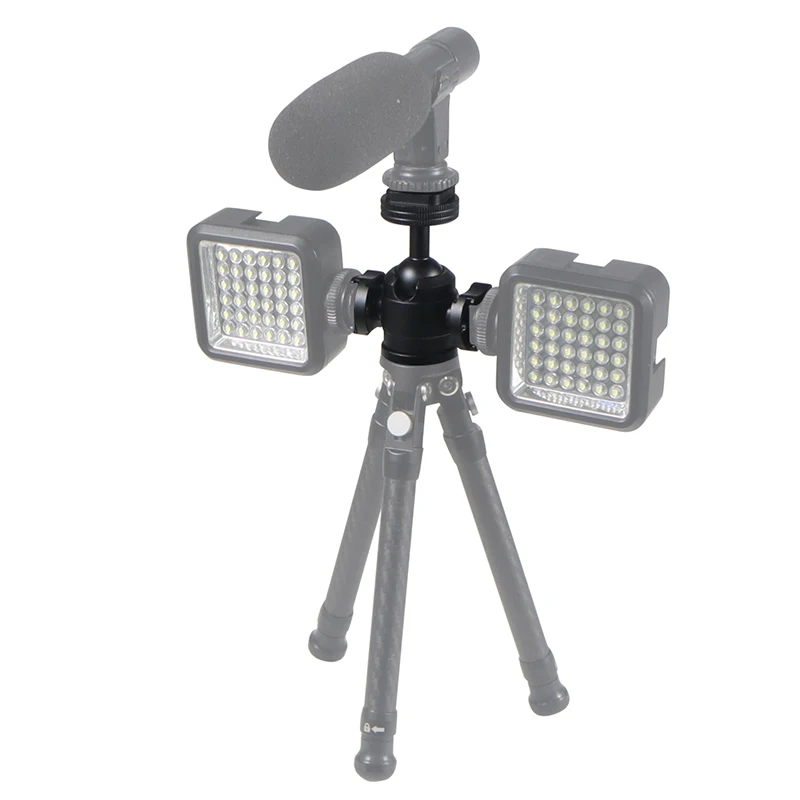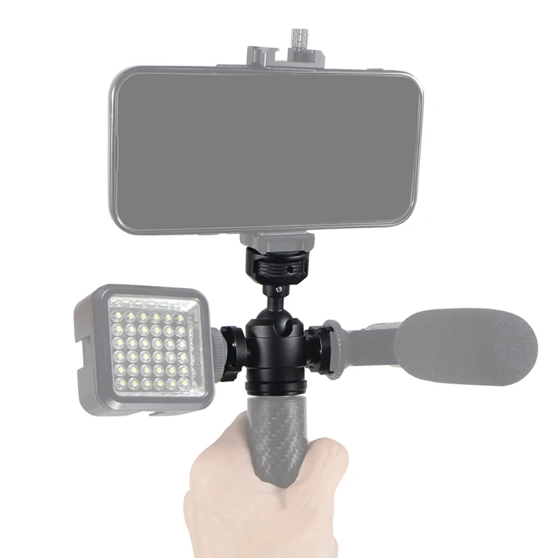 Newest Cold shoe mount ball heads for simultaneous extension of fill lights, microphones, and other equipment when shooting vlogs.