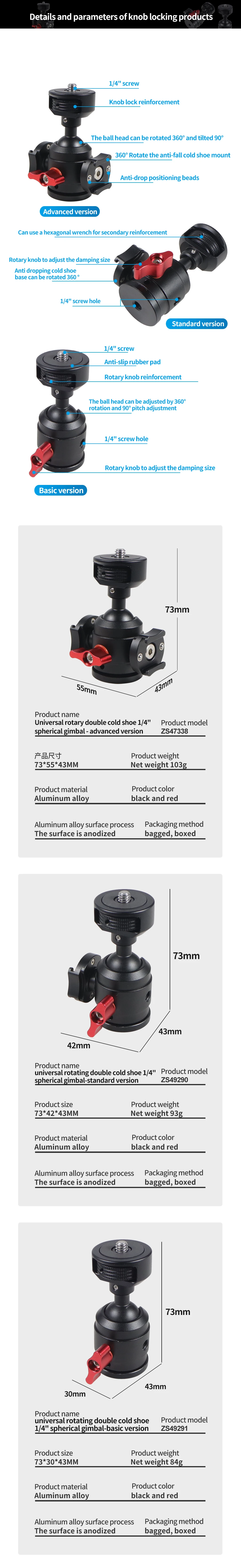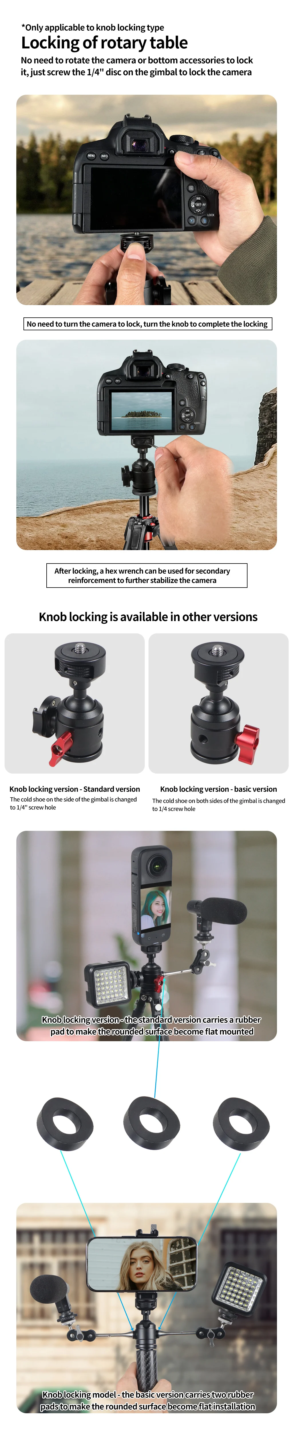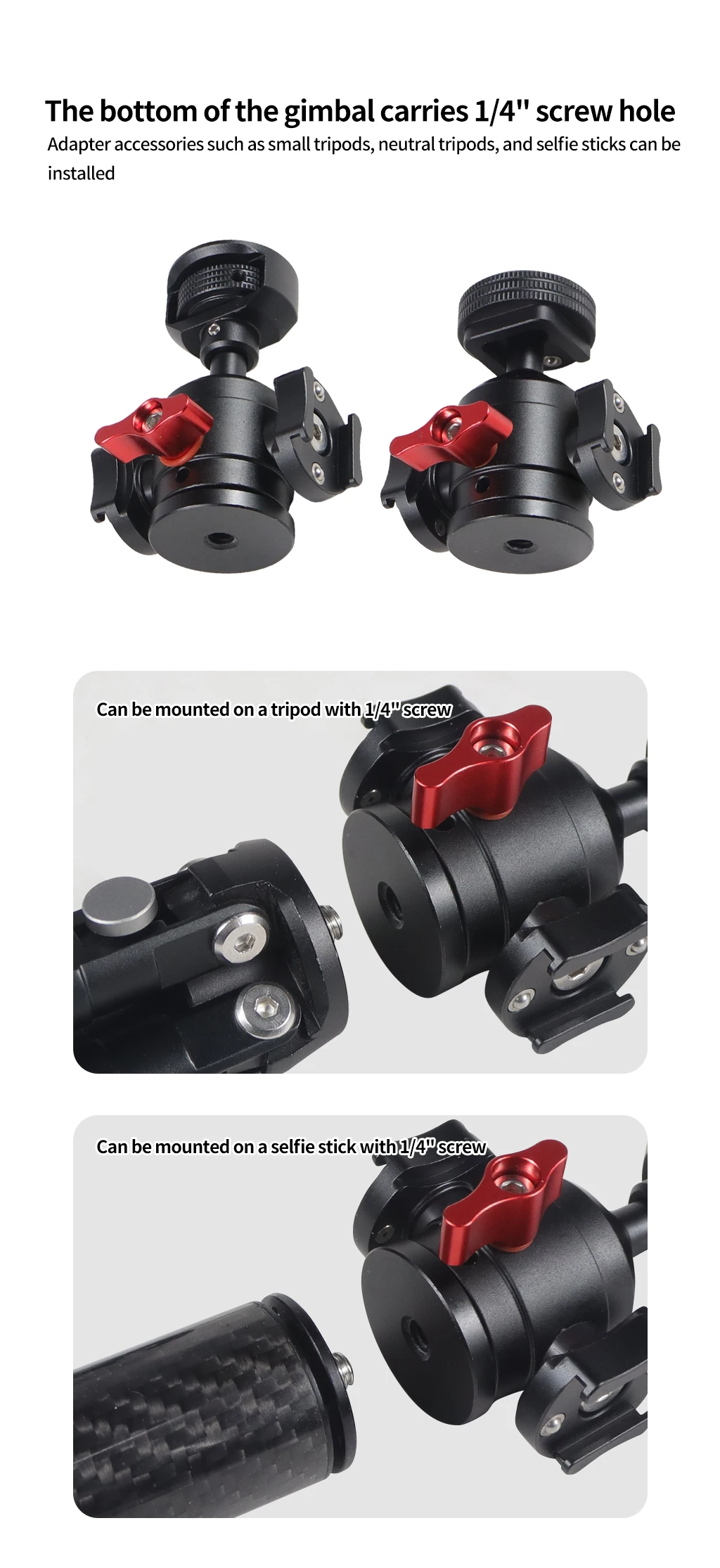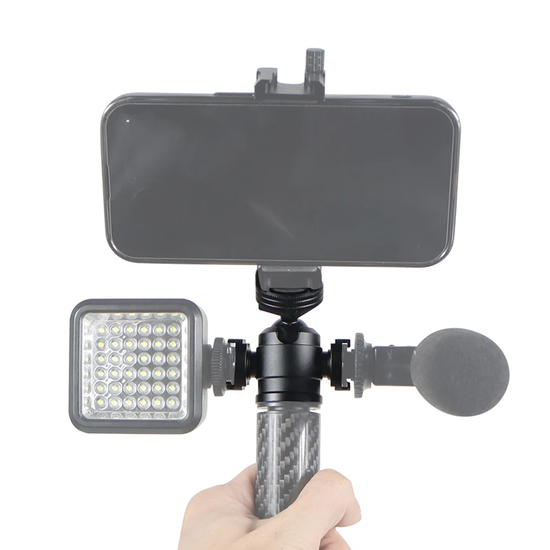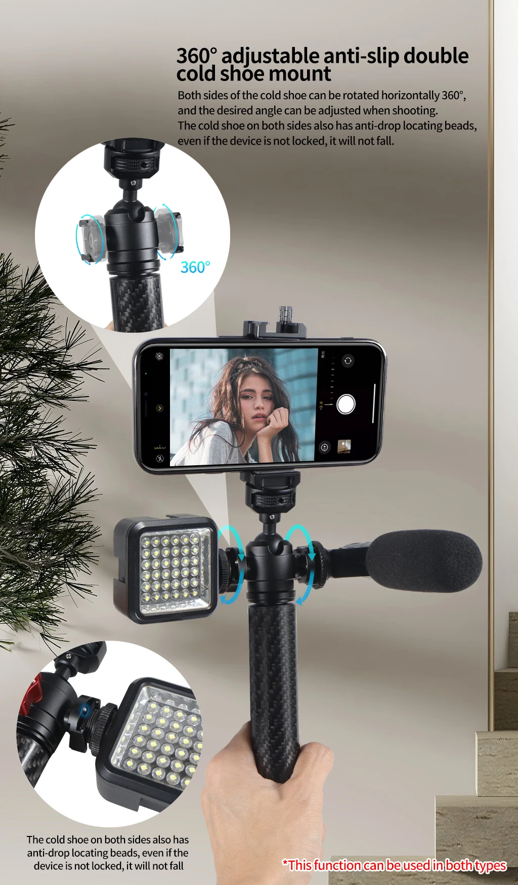 Newest Cold shoe mount ball heads for simultaneous extension of fill lights, microphones, and other equipment when shooting vlogs.