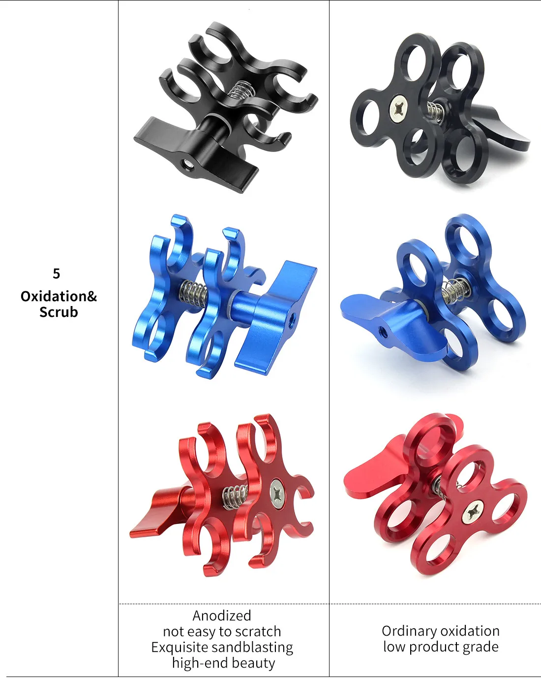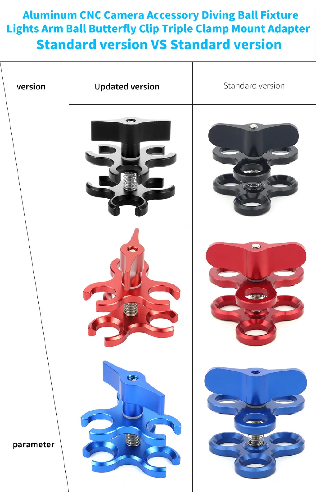 Copy| Product Name | For GoPro13 BGNING 3-Hole Aluminum Triple Butterfly Clip Clamp Mount + Ball Head Adapter for Scuba Diving Lights Arm Fixture LED Hero 5/4/3 Camera |