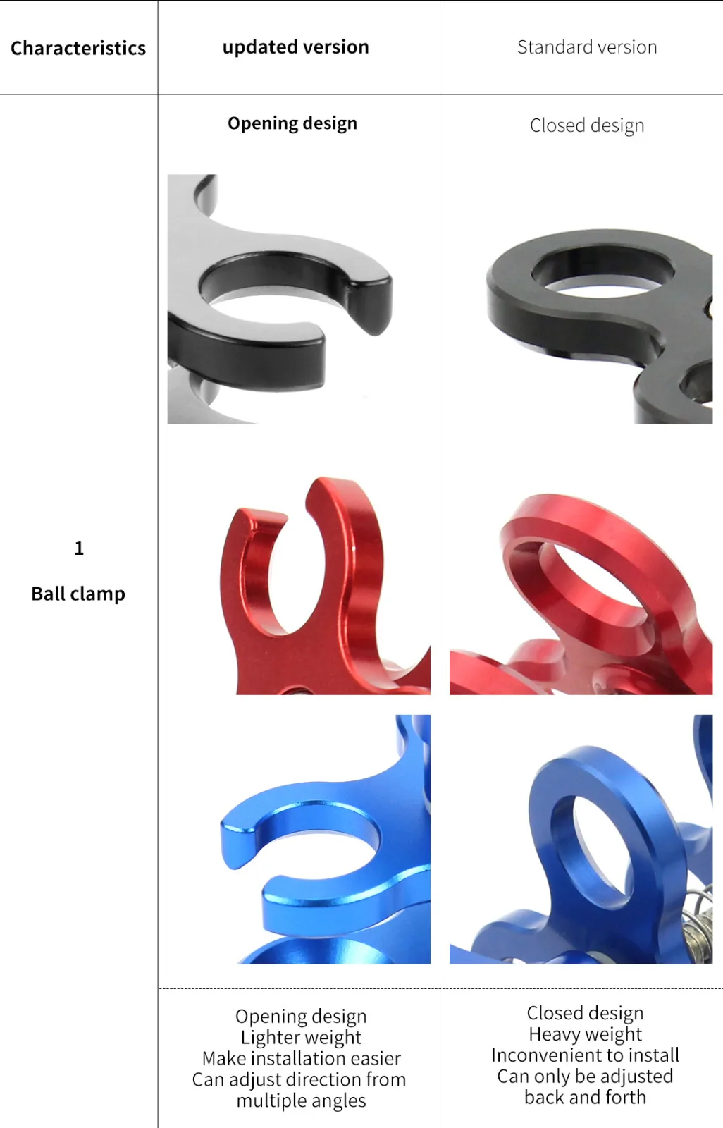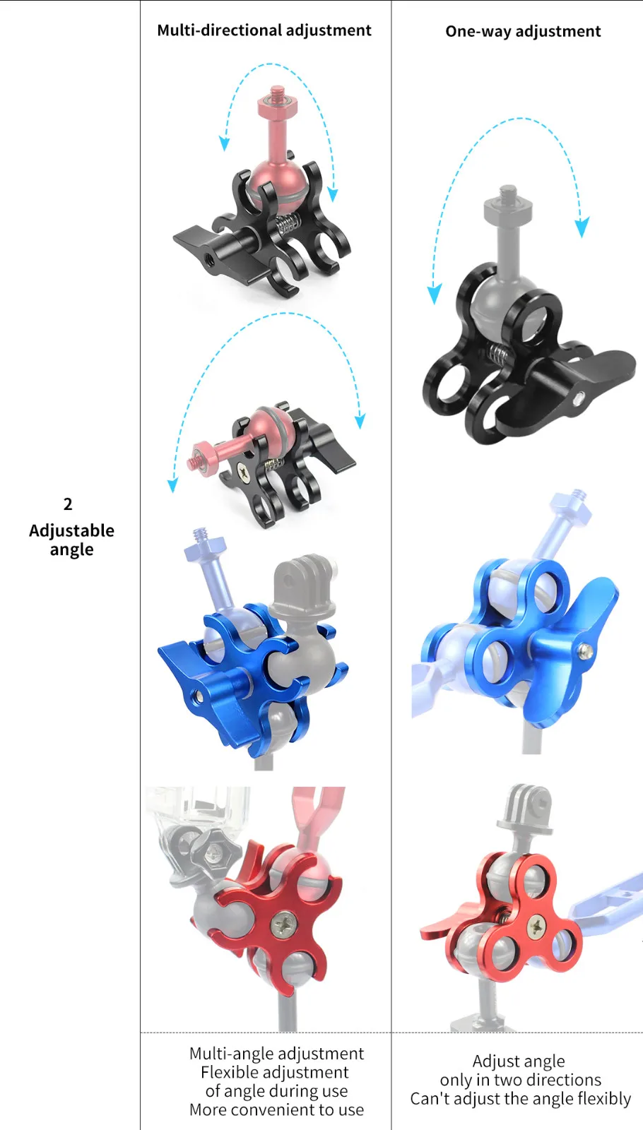 Version One: Aluminum 1/4 inch Screw Ball Mount Adapter, Black/Blue/Red 3 Colors are optional