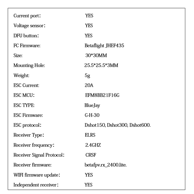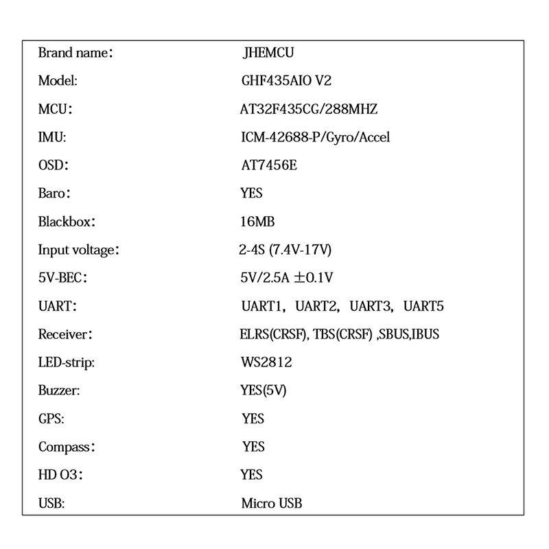 Copy| Product Name | (JHEMCU) GHF435AIO V2 20A F435 2-4S AIO Flight Control ELRS 2.4G For FPV Crossover Aircraft |