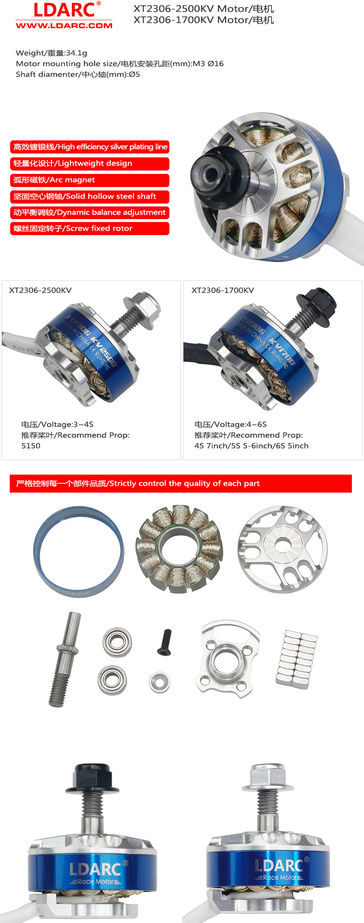 Copy| Product Name | LDARC XT2306 2500KV CW CCW Motor for FPV Racing Drone Quadcopter Lightweight Design Silver Plate Line |