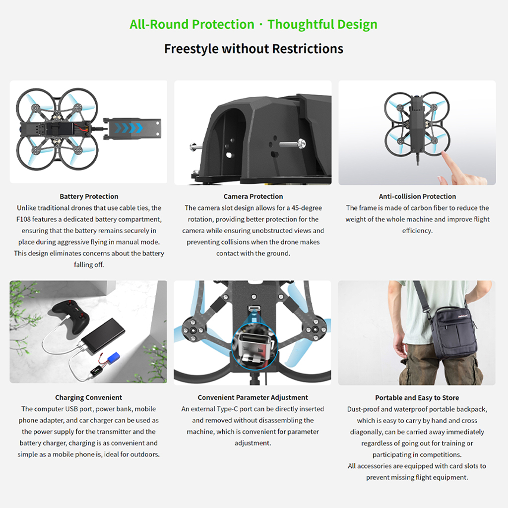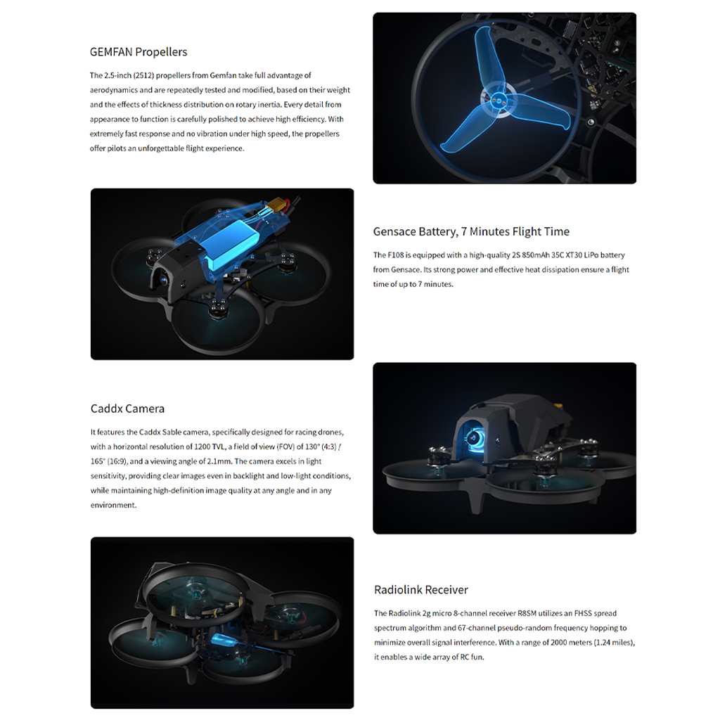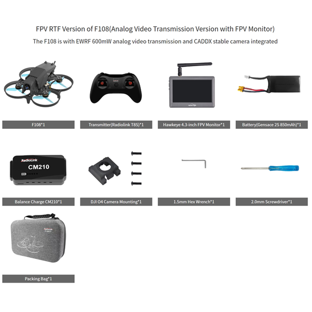 Copy| Product Name | RadioLink F108 Optical Flow Fixed Point 2.5-inch FPV Racing Loop Drone Compatible with ELRS Brushless Drone |