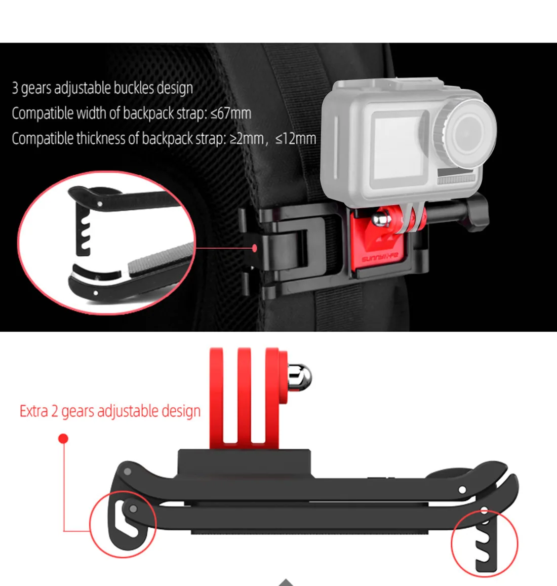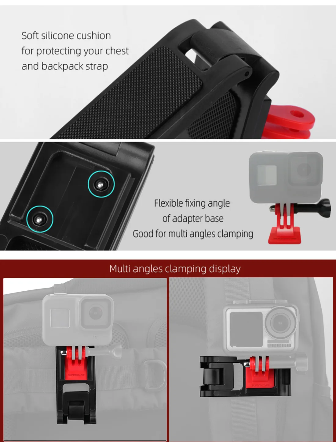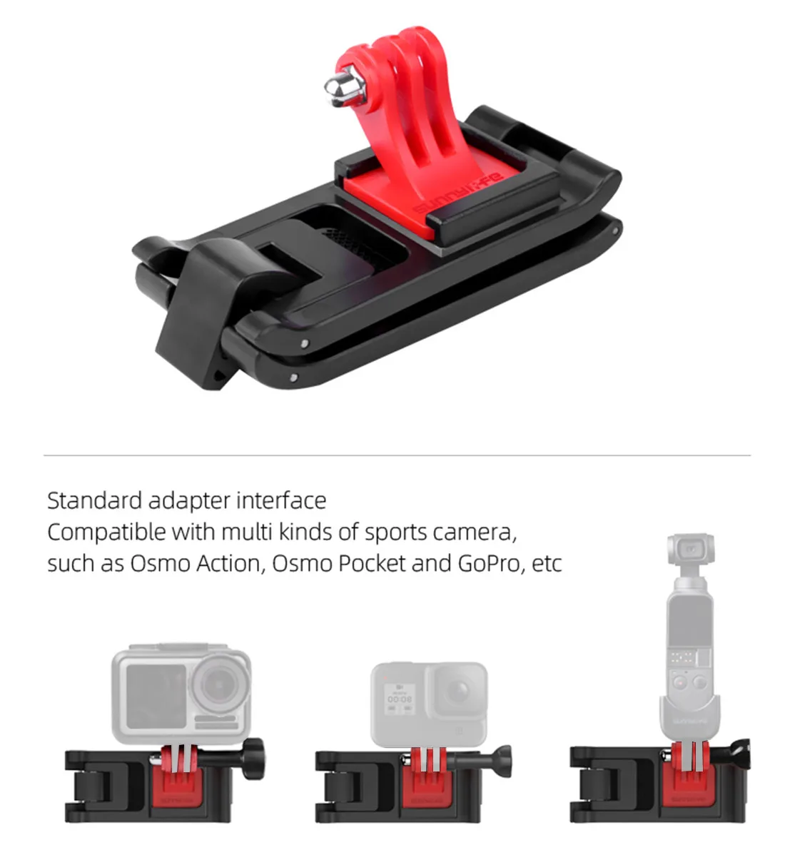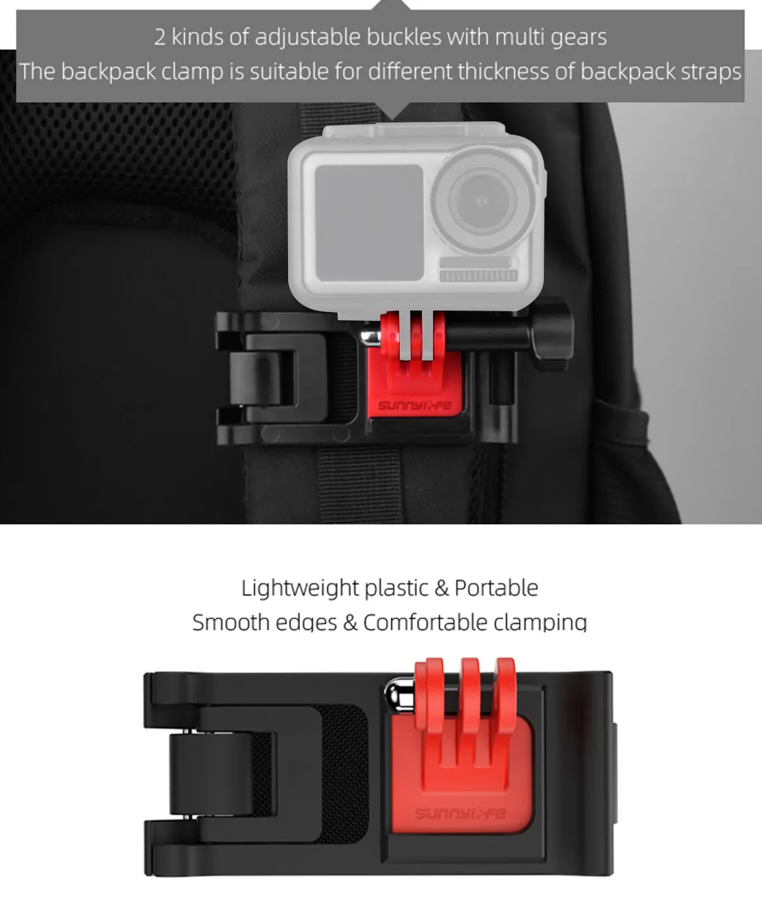 Copy| Product Name | Sunnylife Adjustable Action Camera Backpack Strap Holder Clip Universal for DJI OSMO Pocket GoPro Hero 8 7 6 5 SJCAM Xiaomi Yi Clamp Mount |