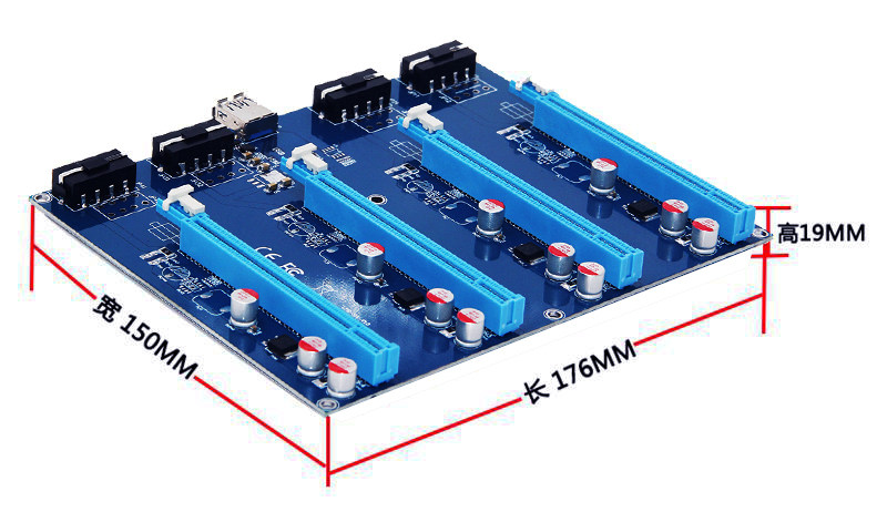Copy| Product Name | XT-XINTE PCI-E Adapter Card PCIe 1 to 4 1X to 16X Slot Riser Mining Card PC Computer Connector for Miner BTC Bitcoin |